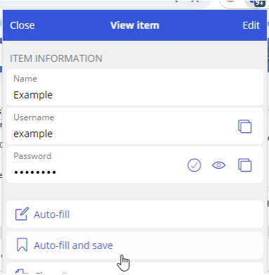 First, make sure you are logged in to Bitwarden. In the top of the extension, type in the client’s name in the search bar to see if it pops up (Figure 1). If it shows up, but is not linked with the website, click on the login, and select Auto-fill and save (Figure 2). This will save it for future uses.